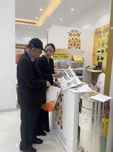 亞洲蜂聯(lián)主席Siriwat Wongsiri在蜜蜂堂BEEHALL展位細(xì)細(xì)觀看,久久駐足,還不時(shí)向工作人員咨詢相關(guān)問(wèn)題,最后對(duì)北京蜜蜂堂BEEHALL的產(chǎn)品理念、產(chǎn)品開發(fā)給予大力贊賞,表示蜜蜂堂是一家了不起的企業(yè),將蜂產(chǎn)品開發(fā)及蜂產(chǎn)品附加值都提升不可多得水平。他更表示將在2023年底親自到中國(guó)參觀北京蜜蜂堂總部。