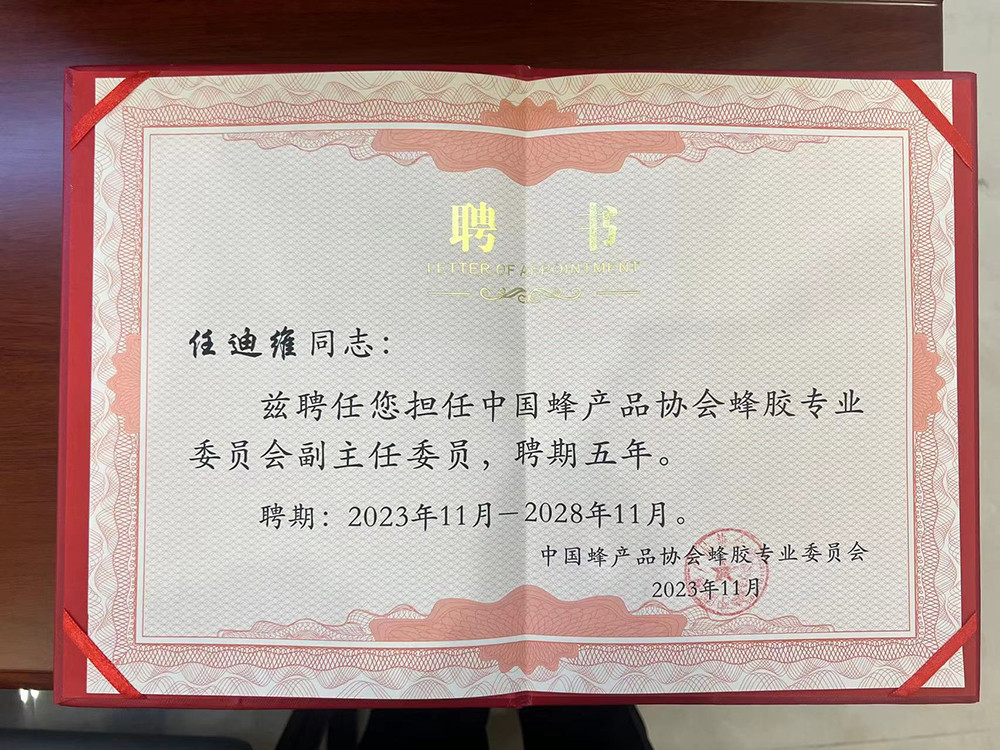 t蜜蜂堂集團董事長獲聘“中國蜂產品協會蜂膠專業(yè)委員會副主任委員”